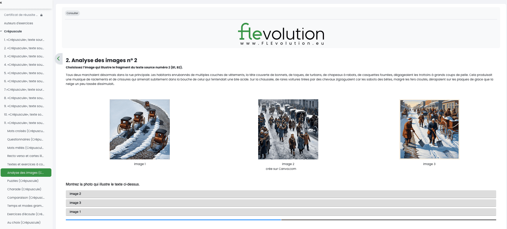 Avec trois éditions prévues jusqu’en 2026, FLEvolution propose une approche révolutionnaire de l’apprentissage du français. À terme, ce ne sont pas moins de 60 extraits de prose contemporaine française et près de 600 activités linguistiques – du niveau B1 à C2 – qui seront disponibles gratuitement sur le site. Élaborés par des étudiants en collaboration avec des experts pédagogiques, ces outils intègrent une gamme variée de supports, comprenant des exercices lexicaux et grammaticaux, des photos, des vidéos, des podcasts et bien plus encore. On vous dit tout sur les activités déjà en ligne !