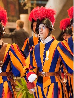 Pour entrer dans la garde pontificale, Il faut mesurer 1m74, avoir entre 19 et 29 ans, être suisse, célibataire et avoir un certificat fédéral d'études. Certes, le baptême et la confirmation sont également demandés pour rejoindre les rangs de l'armée la plus ancienne et la plus petite encore active dans le monde, mais une foi véritable est simplement nécessaire. Personne ne peut tenir deux ans au service du Pape sans une religiosité profonde et solide.