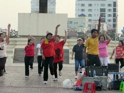 Les séances durent au minimum une heure et généralement deux professeurs se donnent le relai. Mais la place de l'amitié Vietnam/Cambodge est en action jusqu'à tard le soir. En plus des cours de gym, on peut également assister à des cours de danse, moderne ou plus traditionnelle.