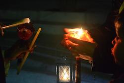 À minuit, à la sortie de la grande messe de la Résurrection, le pope allume un cierge et apporte la Lumière en annonçant la Résurrection du Christ et les cloches carillonnent sans relâche. Les fidèles s'embrassent et sortent de l'église bougies allumées jusqu'à chez eux ou dans les restaurants de la ville -- souvent réservés pour eux -- afin de manger et célébrer la bonne nouvelle...