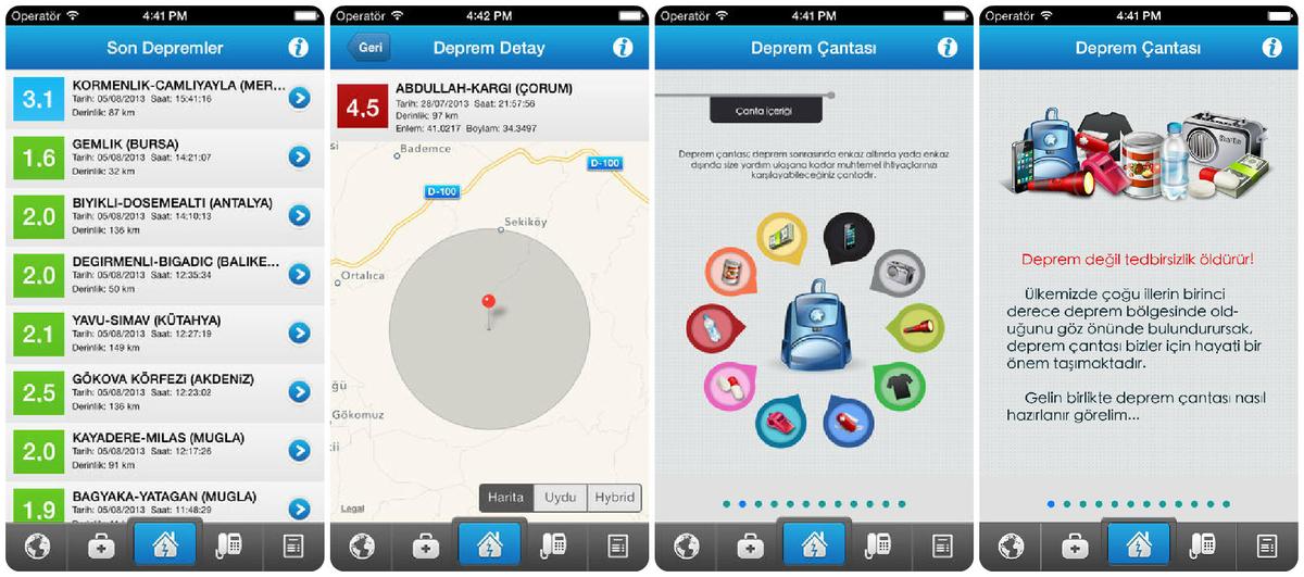 Une rubrique explique comment se préparer à un éventuel séisme: comment organiser sa maison et y trouver les endroits où se réfugier en cas de secousse, comment apprendre à faire face à une telle catastrophe en apprenant à utiliser un extincteur, une trousse de premiers secours et à prodiguer les premiers secours à une personne blessée. Les concepteurs de l'application conseillent notamment de prendre des cours auprès du Croissant-Rouge turc (Türk K?z?lay?).