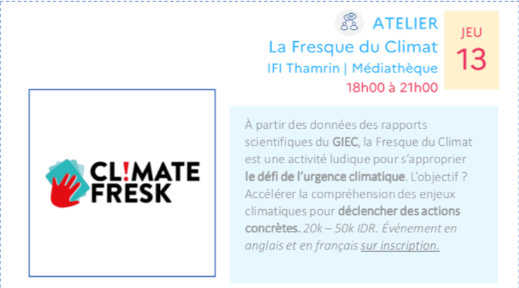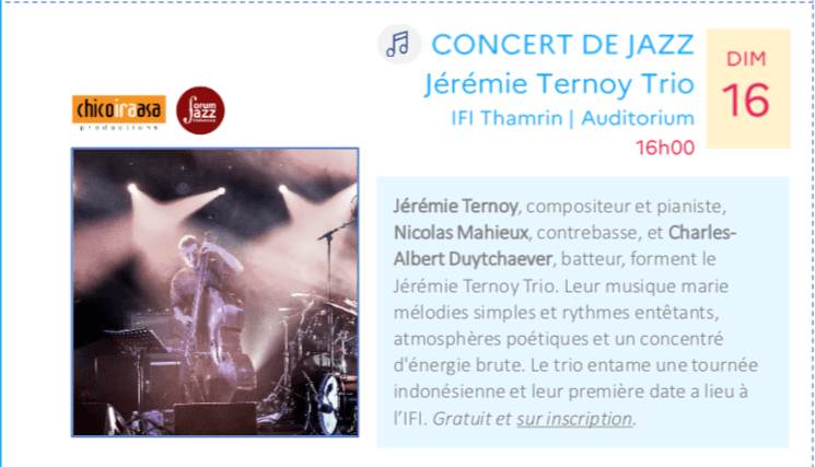 Voici la programmation culturelle de l'Institut Français à Jakarta pour le mois de juillet 2023.