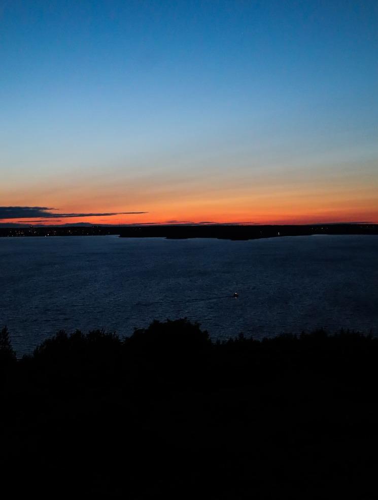 Il est 22 heures et nous commençons à pique-niquer. Il y a beaucoup de vent, mais suffisamment d'arbres pour s'abriter légèrement. La soirée peut commencer. Le soleil se couche au fur et à mesure des éclats de rire et des clichés, mais les couleurs du ciel, elles, restent toute la nuit. Vers 1h du matin, le soleil est couché, mais le ciel toujours orangé, la lune visible au milieu de ces couleurs sublimes. Il fait froid, nous grillons des marshmallows au feu de bois.