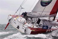 Les monocoques, ici Yann Elies (Generali), ont dû affronter la tempête dès les premiers jours de course (photo AFP)