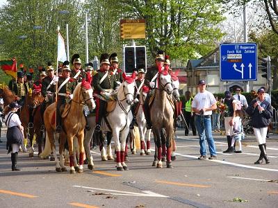 Depuis, elles sont devenues de simples sociétés de sociabilité masculines, réunissant leurs membres autour de traditions. A la fin du XIXème et tout au long du XXème siècle, les quatorze guildes d'origine sont rejointes par quatorze guildes de quartier, à mesure que Zurich absorbe les communes voisines. Après deux fusions, elles sont aujourd'hui 26. Pour Sechseläuten, ce sont donc 3.000 membres qui défilent, costumés et en musique. L'ordre du défilé change chaque année, mais c'est le Comité central des guildes qui ouvre toujours la marche, suivi par les représentants du canton hôte. 350 cavaliers prennent également part au défilé puis font le tour de la place autour du Böögg en feu.